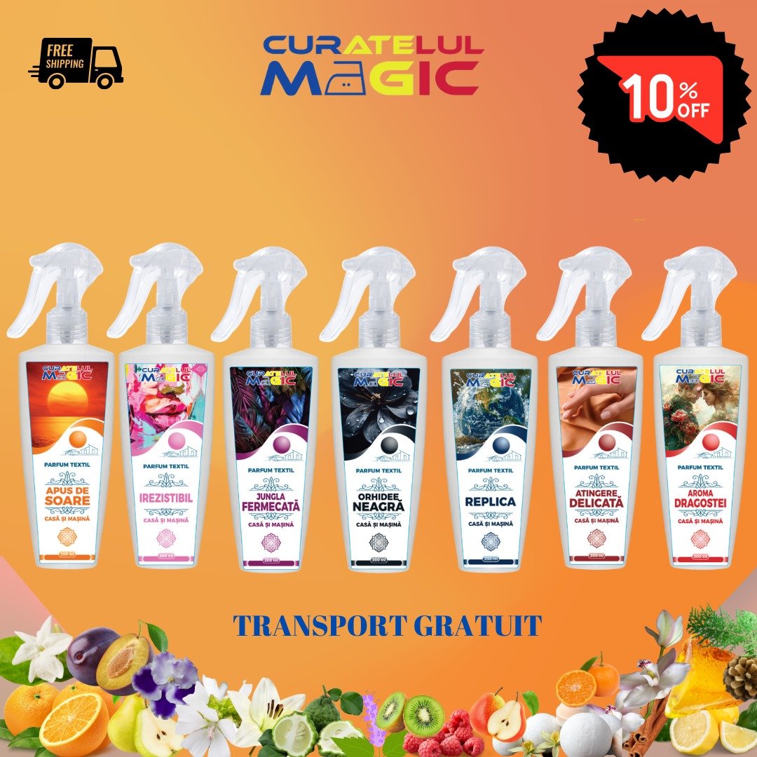 Alege să îți parfumezi casa, mașina și hainele cu Pachetul de 7 Parfumuri textile „Armonie și emoție olfactivă” .